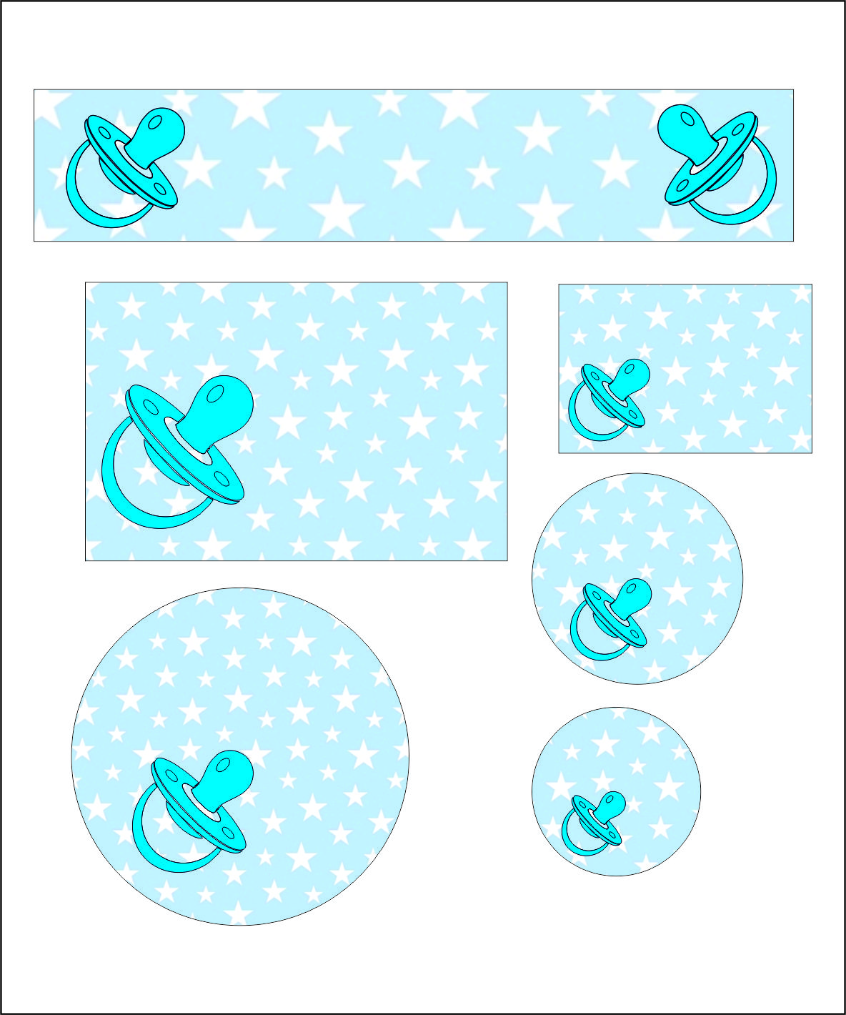 מדבקות לגן -מוצץ כחול- 91 יח בגדלים שונים