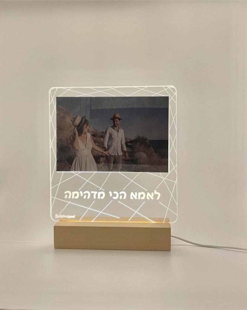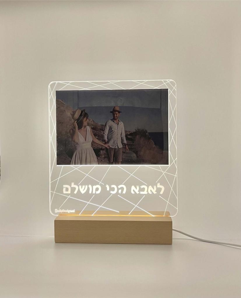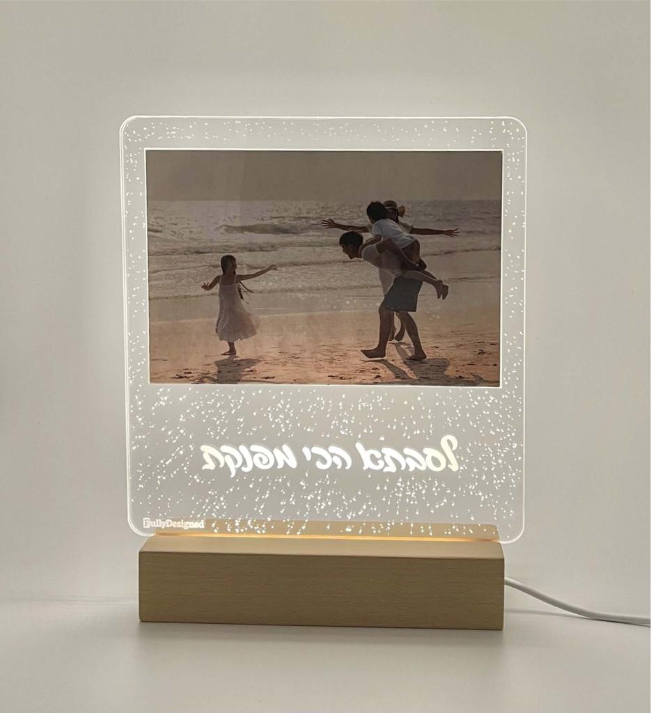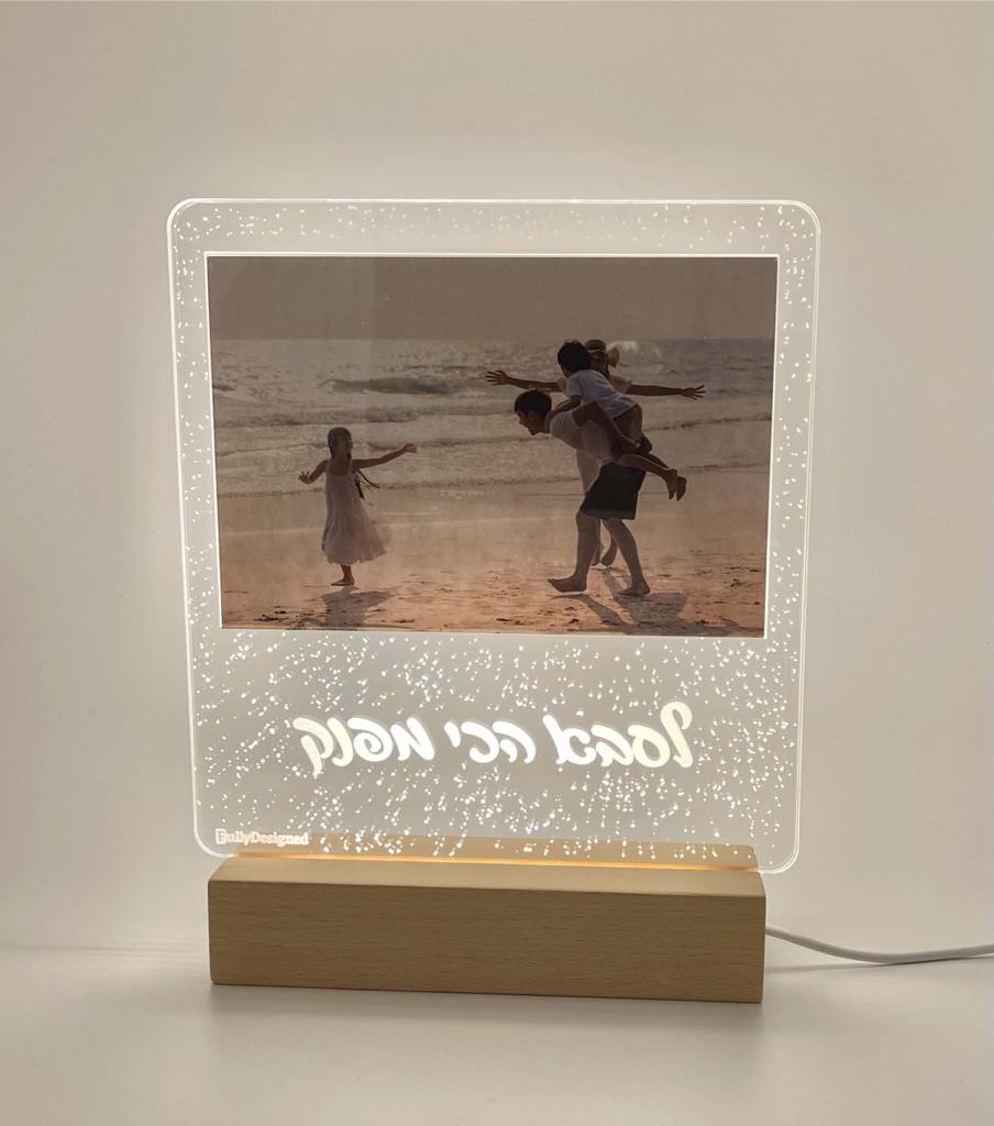 • מעמד תמונה עם כיתוב בנוי בלי אור