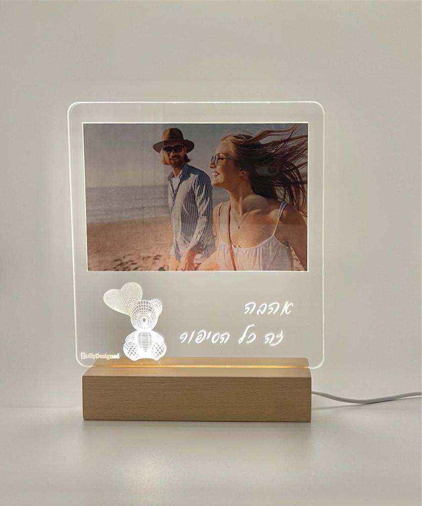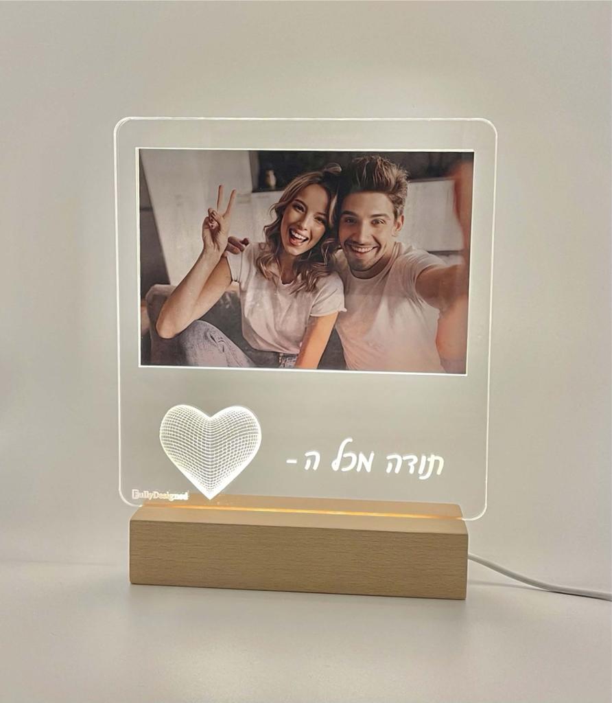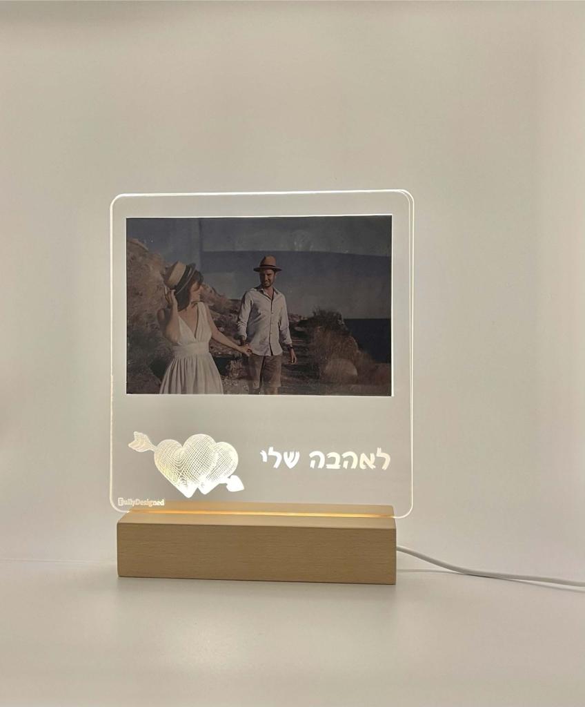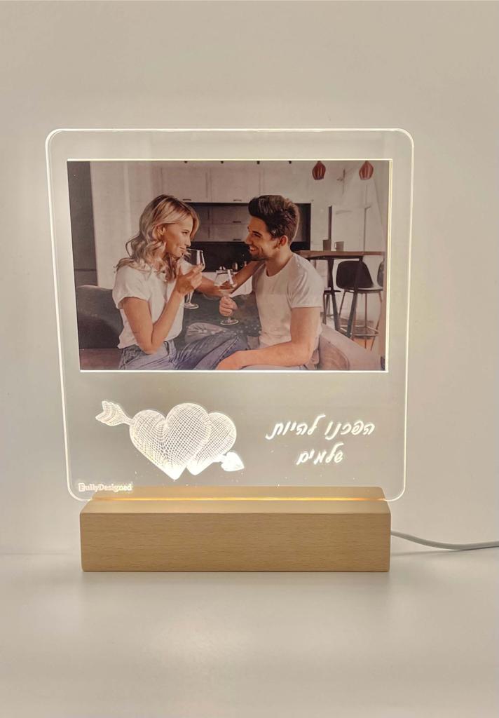 • מעמד תמונה עם כיתוב בנוי בלי אור