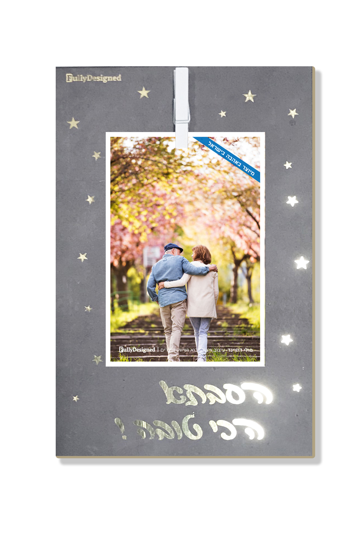• מעמד תמונה עם כיתוב בנוי בלי אור
