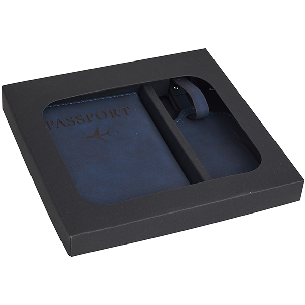 נרתיק לדרכון+ תג למזוודה דמוי עור במארז מתנה כולל חריטה