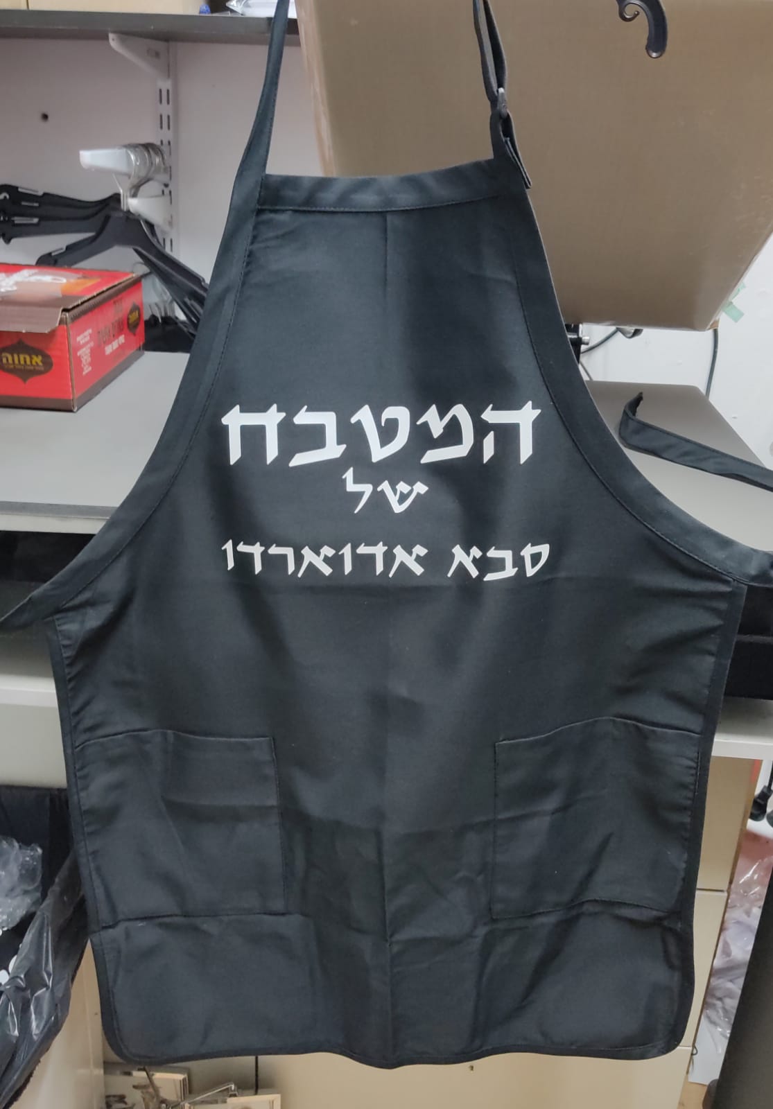 עמוד הביתמוצרים מודפסיםטקסטיל מודפס בעיצוב אישי סינר שף בצבע שחור