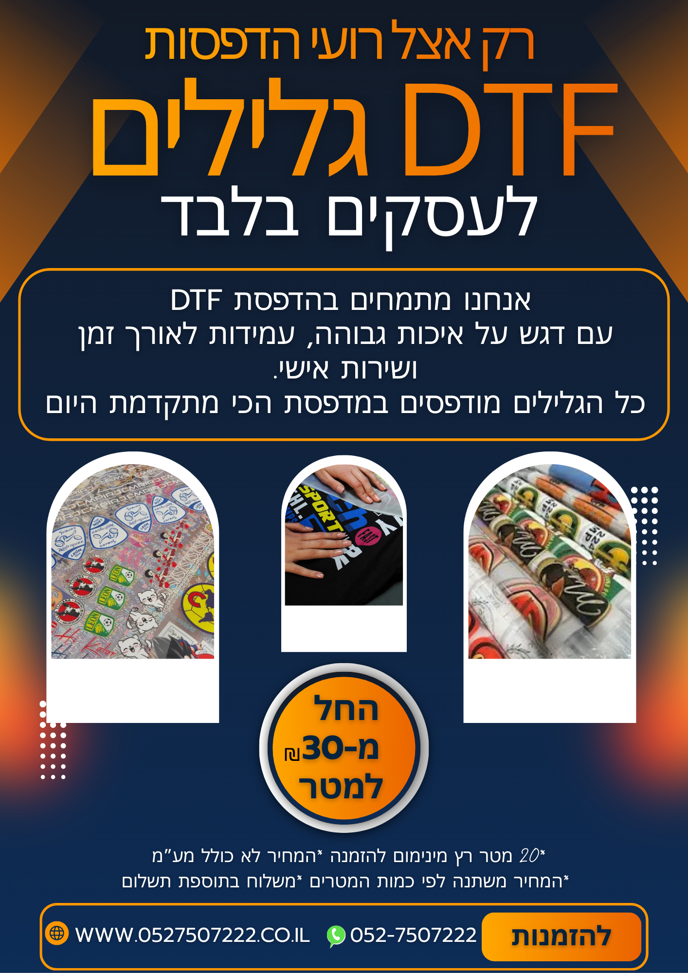 DTF בגלילים לפי מטר